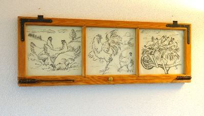 Hühner-Studien hinter altem Fenster